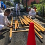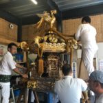 令和元年 富岡八幡宮例祭に向け、町会会館にて3基の神輿の作成、御仮屋と神酒所の設置を行いました。